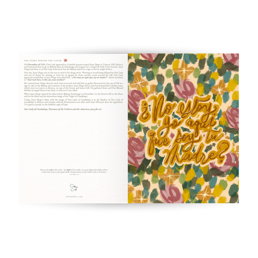 "¿No estoy yo aquí que soy tu Madre?" "Am I not here who am your Mother?" — Inspired the miraculous story and image of Our Lady of Guadalupe on the tilma of San Juan Diego.